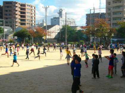 たてわり集団に分かれて,遊びました。運動場では,鬼ごっこやしっぽとりが行われていました。