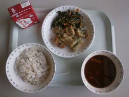 「ちくわのいそべあげが,カリッとしているところと,中のもちもちしているところがおいしかったです。赤だしのあじがよくておいしかったです。大豆がとうふになることは,しっていたけれど,油あげになることをはじめて知って,大豆のことがもっとおもしろく感じふしぎだなと思いました。大豆はすごくえいようのあることがわかりました。」(3年児童)