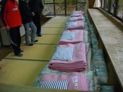部屋の掃除をしています。ふとんもきれいに並べました。