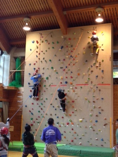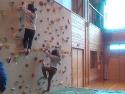 クライミングのやり方に慣れてから,上の方まで登る体験をしました。