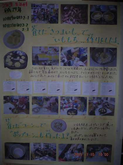 ランチルームに,2年生の食育の取り組みの掲示物を作成しています。