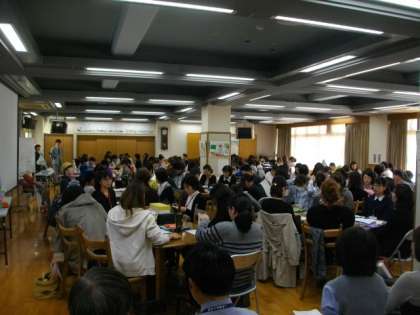 PTAはぐくみ委員さんの全市研修会が本校で開催され,およそ200名にご来校いただきました。。非常に和やかな雰囲気の中,講師の方から様々なふろしきの包み方についてご紹介があり,その後,子育てについての意見交換がすすめられました。