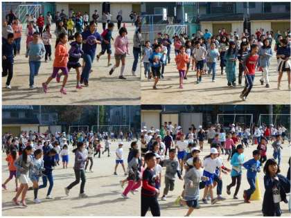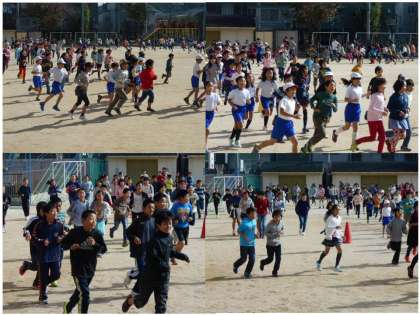 今日の業間マラソンは,1年生が午前中校外学習に出かけているので,2〜6年生で行いました。日差しがあたたかく,走っていると暑さを感じる児童もいるようでした。