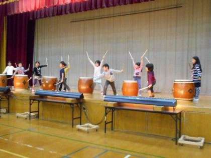 学習発表会で演奏する太鼓の練習をしています。