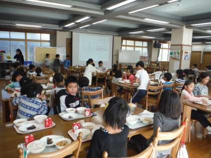 4日間一緒に食べたこともあり,今日は班でなかよくたのしく給食を食べていました。