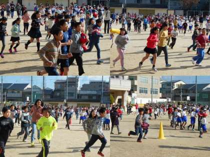 今日は,4年生が社会見学に行っていましたので,1・2・3・5・6年生で走りました。