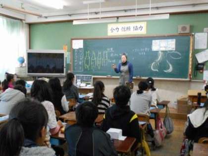 図画工作の学習で,木版画を行っています。彫刻刀の種類や使い分けなどについて知りました。