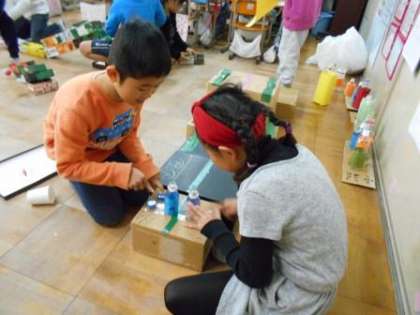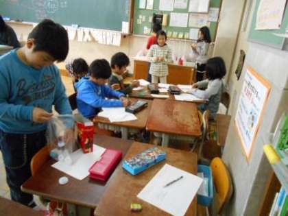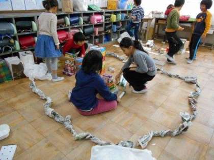 図画工作の学習でグループごとに作った遊びに,1年生を招待するための準備をしています。