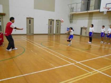 監督やコーチ,先生を相手に,レシーブやトスの練習をしています。