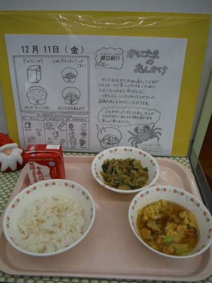 「今日のきゅう食でわたしは,かにたまのあんかけがとてもおいしくってほっぺがおちそうになりました。また,おいしいきゅう食を食べたいです。」(2年児童)