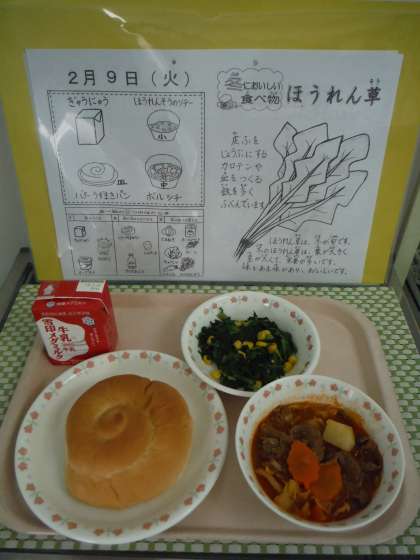9日(火)ボルシチ・ほうれんそうのソテー(スチコン)
