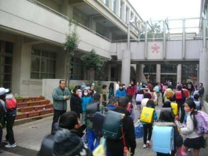 4年1組のお友達が,校門前に立って,元気よく挨拶をしてくれました。