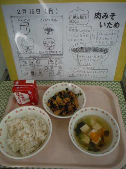 「肉みそいためが,ごはんにあっていておいしかったです。3倍食べたかったです。」(3年児童)
