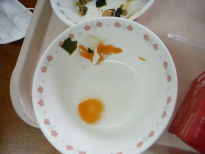「とうふとあおなのスープがおいしかったです。はっぴいきゃろっとがはいっていなかったけれど,こんどははっていたらいいなとおもいました。」(1年児童)
