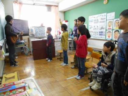 卒業生をおくる「合同おわかれ会」に向けて,歌の練習をしています。