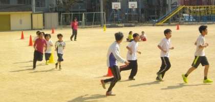 午前中はPTA陸上の練習がありました。力強い走りです。