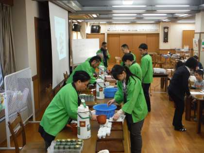 最後に,玉露を40〜60度の温度で淹れていただきました。先ほどは,熱い温度で入れたものを味わいましたが,低い温度で入れたものは全く味が違ったので,子どもたちは,いれるお湯の温度でこんなに味が変わるのかと感動していました。