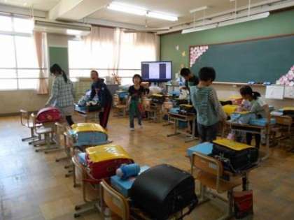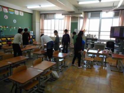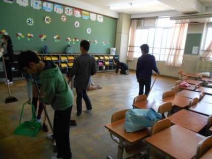 しばらくの間,1年生の教室は6年生が掃除をしてくれます。
