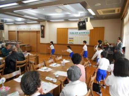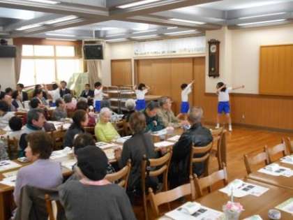 今日は,本校ランチルームで地域の昼食会が行われています。3年生が出演し,「キッズソーラン」を披露しました。
