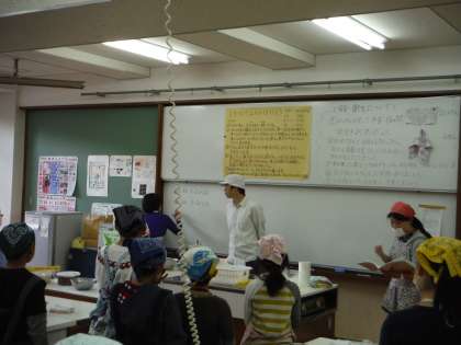 子どもたちは,「すっごく甘い。これがみその原料なの?」など,いろいろ疑問に感じながら,お味噌やさんのお話を聞いて「なるほど…」とうなずいていました。