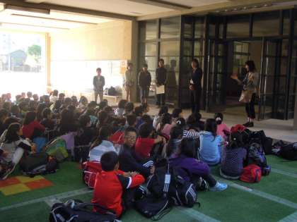 出発式の後,元気に学校から出発しました。