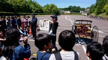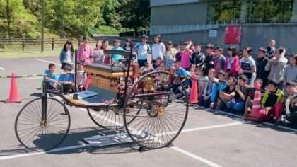 トヨタ博物館に到着しました。世界初のガソリン車走行を実際に見せていただきました。エンジンを「えいやっ。」とかけて走る様子に驚いていました。