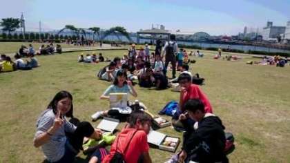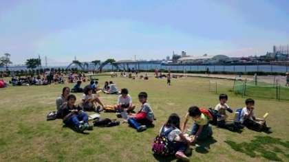 名古屋港水族館に着きました。しおかぜ広場で昼食をとります。