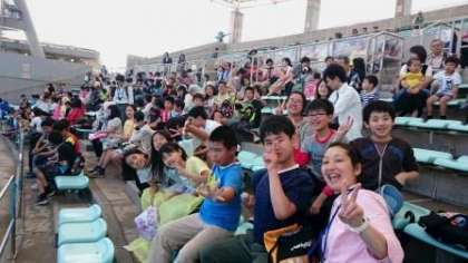 昼食の後は,水族館のスタジアムでイルカショーを見ました。大きなスクリーンに自分たちが映し出されて,みんな大喜びです。