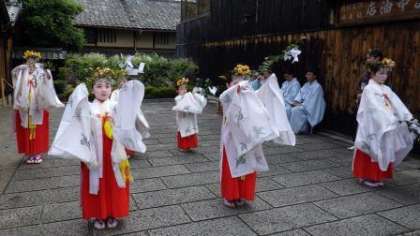 地域のお祭りには,本校児童が八乙女にも参加しています。