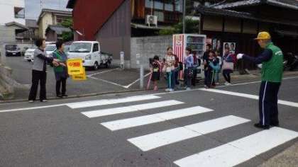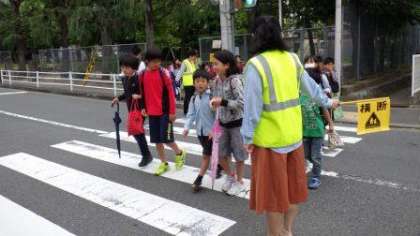 地域の交通安全会の皆さまやPTAの皆さまに,登下校の見守りをしていただいています。いつもありがとうございます。