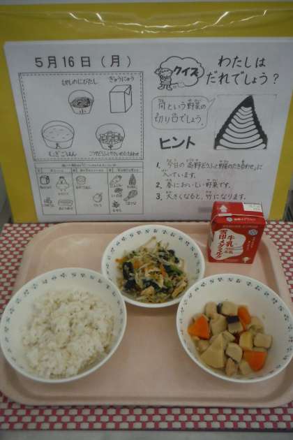 「こうやどうふとやさいのたきあわせが,ごはんとよく合いおいしかったです。もやしのにびたしは,もやしのシャキシャキかんがとてもよくおいしかったです。いつもおいしいきゅう食ありがとうございます。おいしい給食を食べられて,わたしはとてもしあわせです。」(4年児童)