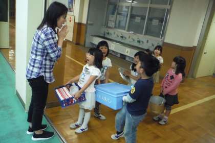 1年生も給食返却を頑張っています。