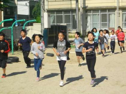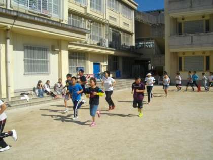 久しぶりにいい天気になりました。元気よく走っています。今日は,PTAにじょっこ応援団の方もいっしょに走ってくださいました。