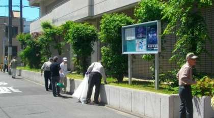 地域の方々が,お昼休みの時間帯に,校門前の草抜きや落ち葉拾いなど,きれいに掃除をしていただきました。
