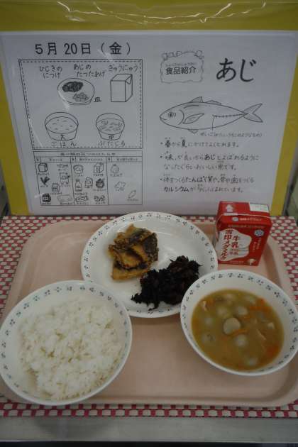 「今日のこんだてであじのたつたあげがおいしかったです。ほねがあってもおいしかったです。」