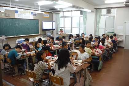 今日は,1年・2年・3年生は遠足のため,持ち帰り給食として果物缶を持ち帰りました。