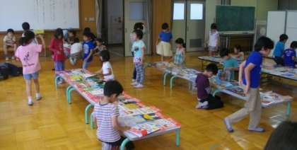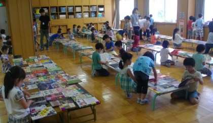 選書会をしました。自分でお気に入りの本を見つけて,しおりを挟んでいきます。なかには,夢中になって読んでいる子もいました。