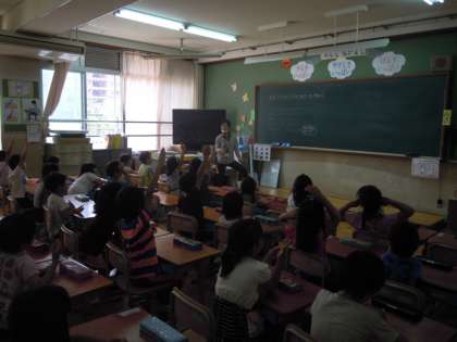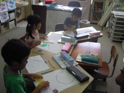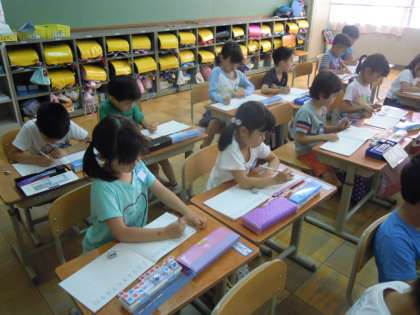 1年生は数図ブロックやおはじき,ノートなどを使って数の学習をしています。先生の話をしっかり聞いてがんばっていました。