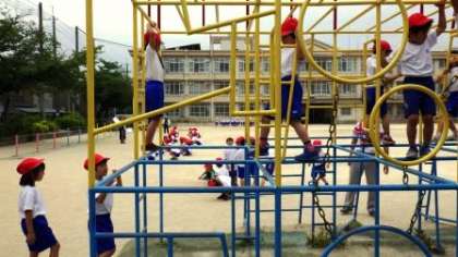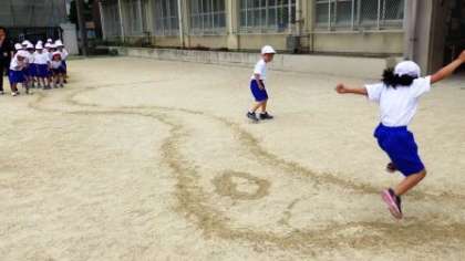 運動場で体育の学習をしました。鉄棒・総合遊具・歩いたり走ったりする運動の3つの運動を,学級ごとに交替で活動しました。準備運動のしかたも学習しています。