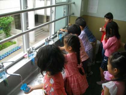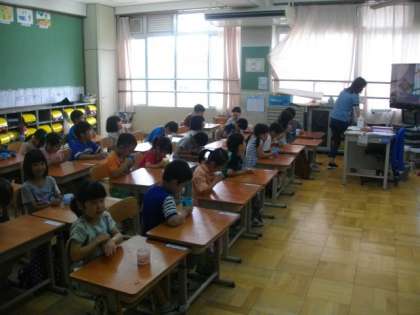 毎週木曜日の朝に,フッ化物洗口を行っています。