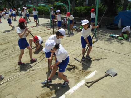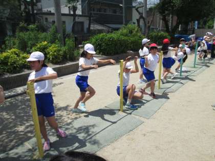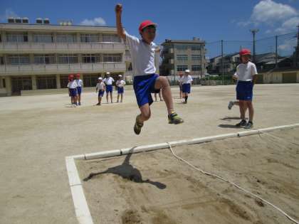 5年生は体育の授業で走り幅跳びと,てつぼうに挑戦しています。