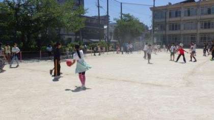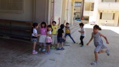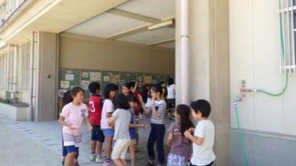 とても暑い天気です。子どもたちは元気に外で遊んでいます。ミストシャワーも大人気でした。
