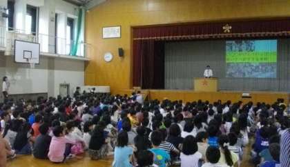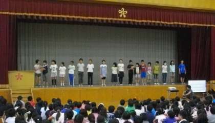 6月の朝会では,校長先生のお話を聞いたあと,放送委員会から活動についての紹介がありました。