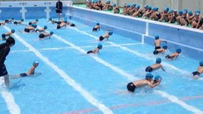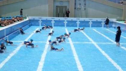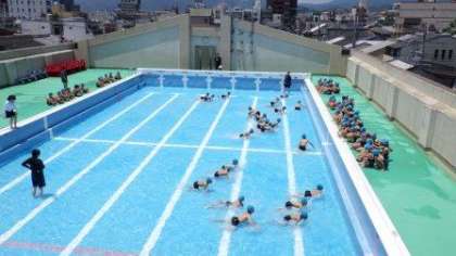 3・4時間目に2年生が水慣れの学習を行いました。とても暑いので,プールでの活動がとても気持ちよさそうです。「赤ちゃん歩き」など,いろいろな歩き方をしました。