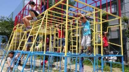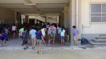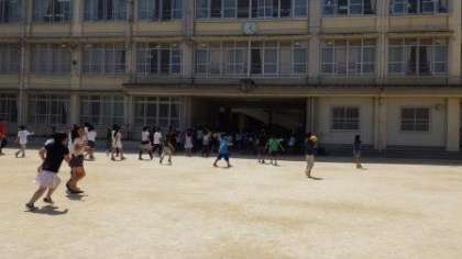 日差しが強くとても暑いですが,子どもたちは元気に遊んでいます。チャイムがなる前には教室に戻る姿が素晴らしいです。ミストシャワーを浴びて涼んでから教室に戻っていました。