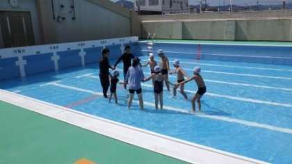 今年度初めてのプールでの学習を行いました。着がえや準備運動,プールに入る時などのきまりを確認しながら学習をすすめました。とても暑いので,みんなとても気持ちよさそうでした。