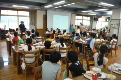 「こぎつねちらしのぐがすっぱくておいしかったです。またきゅうしょくちょうりいんさんつくってください。」(2年児童)