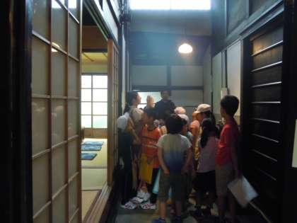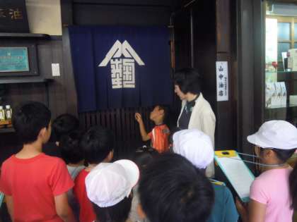 3年生の町屋見学グループが,山中油店さんに見学に行きました。いろいろな質問をしたり,町屋の中を見せていただいたりしました。今の住まいとは違うところをたくさん見つけることができました。