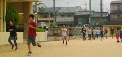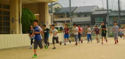 曇り空で,涼しい朝となりました。6年生は集団登校の後,それぞれのめあてにそって朝マラソンに挑戦しています。
