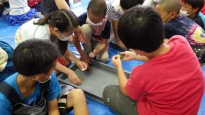 今日は,PTAの皆さんが4年生の子どもたちのために,勾玉づくりの活動を企画してくださいました。子どもたちは,やすりを使って一生懸命みがき,自分だけの勾玉をつくっていました。